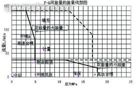 但其變量特性可用來降低對伺服電機(jī)的扭矩負(fù)載,故降低其電流及其發(fā)熱,使在需要極低流量的保壓,保壓時(shí)間能夠更長。這在油研公司的雙排量設(shè)計(jì)發(fā)揮了出來。從下圖得知,保壓及高壓合模所需的流量低但壓力高,可將變量泵轉(zhuǎn)為小排量,降低在低速時(shí)伺服電機(jī)的大電流產(chǎn)生的發(fā)熱。此功能連全電機(jī)也做不到。如不用雙排量的話,保壓及高壓合模會超越原排量的壓力流量范圍,但仍在虛線的超載范圍內(nèi),可以作短暫保壓及高壓合模。如鎖模方法是采用機(jī)鉸,高壓合模自然是短暫的。直壓鎖模如不采用單向閥將鎖模力鎖住,便要靠電機(jī)油泵不停地工作來維持鎖模力。雙排量的小排量能提供長時(shí)間的保壓及高壓合模。