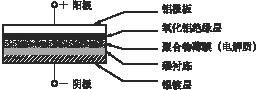 這兩個(gè)系列電容器的內(nèi)部結(jié)構(gòu)如圖1所示,用鋁極做陽(yáng)極,在下表面用電解工藝制成一層氧化鋁絕緣層。采用高分子聚合物薄膜作為固態(tài)電解質(zhì),由碳襯底及鍍銀層作為陰極,外部用塑料封裝。這種多層結(jié)構(gòu)與鋁電解電容器及固態(tài)鉭電解電容器是不同的,在0.1MHz~10MHz頻段有很好的特性。