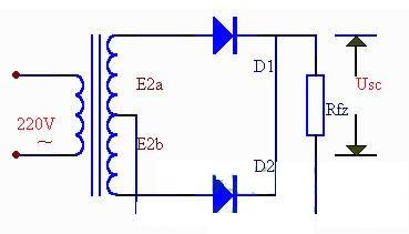 如果把整流電路的結(jié)構(gòu)作一些調(diào)整,可以得到一種能充分利用電能的全波整流電路。下圖是全波整流電路的電原理圖。