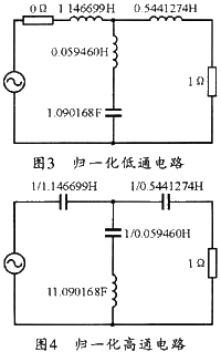 此時對應(yīng)的歸一化低通電路如圖3所示,它表明的是低通原型;