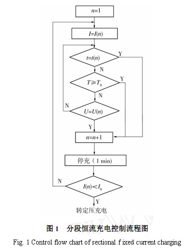 溫度參數(shù)控制 : 設(shè)定某段恒流充電至可接受電流極限時的電池溫度最高值 ,根據(jù)溫度傳感器檢測的電池溫度來控制充電裝置。當外界環(huán)境溫度較低 、設(shè)置的電池最高溫度較高時 ,采取控制溫升法 ,當電池的溫升達到設(shè)定值時 ,溫控器使充電裝置停止充電 ,直到溫度下降至適當值時 ,自動進入下一階段恒流充電 。
