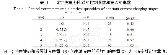 (2) 減小各段恒流值下降梯度 。通過試驗確定該型電池初次恒流值I (1) ,并減小階段恒流充電的電流下降幅度 。如果降低充電電流后 ,達到充電終止容量梯度值的時間很短 (設(shè)定一個最小充電時間) ,則適當增大電流下降的幅度 。