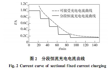 分段恒流充電使電池的實際充電電流曲線接近充電可接受電流曲線 ,是實現(xiàn)電池快速充電的有效方法。采用容量梯度法確定恒流充電終止標準參數(shù),減小階梯恒流充電電流下降梯度 ,并輔以電池溫度過高則停止充電的保護控制 ,可實現(xiàn)動力電池的智能化快速充電控制。試驗結(jié)果表明 ,這種恒流充電控制方法可有效縮短充電時間 ,提高充電效率 ,延長電池使用壽命。