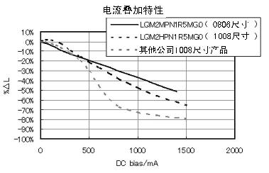 通過直流電流后感值偏執(zhí)特性良好,可以作為各功率電感的特長。電流-感值偏執(zhí)特性是指功率電感通電時,電流變大引起感值下降的性質(zhì)。這是疊層型功率電感的封閉磁路構(gòu)造導(dǎo)致的磁通量飽和引起的,因此為了克服這個弱點,開發(fā)新技術(shù)以降低疊層鐵氧體中的磁通量分布,從而改善電流的疊加特性,最后反映在各個產(chǎn)品上。