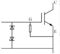 IGBT的柵極-發(fā)射極驅(qū)動電壓VGE的保證值為±20V,如果在它的柵極與發(fā)射極之間加上超出保證值的電壓,則可能會損壞IGBT,因此,在IGBT的驅(qū)動電路中應(yīng)當(dāng)設(shè)置柵壓限幅電路。另外,若IGBT的柵極與發(fā)射極間開路,而在其集電極與發(fā)射極之間加上電壓,則隨著集電極電位的變化,由于柵極與集電極和發(fā)射極之間寄生電容的存在,使得柵極電位升高,集電極-發(fā)射極有電流流過。這時若集電極和發(fā)射極間處于高壓狀態(tài)時,可能會使IGBT發(fā)熱甚至損壞。如果設(shè)備在運(yùn)輸或振動過程中使得柵極回路斷開,在不被察覺的情況下給主電路加上電壓,則IGBT就可能會損壞。為防止此類情況發(fā)生,應(yīng)在IGBT的柵極與發(fā)射極間并接一只幾十kΩ的電阻,此電阻應(yīng)盡量靠近柵極與發(fā)射極。如圖2所示。