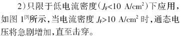 1)在有限面積的接觸處,擊穿電壓通常會小于100 V;