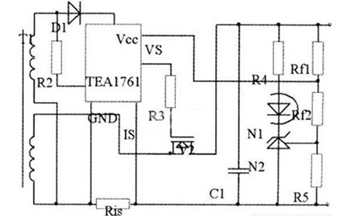 采用TEAl761T的同步整流電路如圖6所示。同步信號(hào)SRSENSE直接取自高頻變壓器次級(jí),R3是輸出電流取樣電阻,通過選擇合適的R3的阻值,可控制最大輸出電流。TEA1761T具有欠電壓鎖定和啟動(dòng)功能,D2為TEA1761T提供電源,同時(shí)檢測(cè)輸出電壓,當(dāng)Vcc引腳電壓高于8.6V,TEA1761T激活同步整流電路和輸出電壓與輸出電流檢測(cè)電路。當(dāng)電壓低于8.1v時(shí),則進(jìn)入欠電壓鎖定狀態(tài),驅(qū)動(dòng)輸出保持低電平,光耦反饋輸出被封鎖。