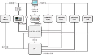 典型的AC/DC電源測試系統(tǒng)包含了程控交流電源、程控電子負(fù)載、高精度數(shù)字萬用表、數(shù)字示波器、多通道程控開關(guān)以及工控機和測試軟件。