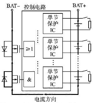 系統(tǒng)中控制電路部分單節(jié)鋰電池保護芯片的充電過電壓保護控制信號經(jīng)光耦隔離后并聯(lián)輸出,為主電路中充電開關(guān)器件的導(dǎo)通提供柵極電壓;如某一節(jié)或幾節(jié)鋰電池在充電過程中先進入過電壓保護狀態(tài),則由過電壓保護信號控制并聯(lián)在單節(jié)鋰電池正負(fù)極兩端的分流放電支路放電,同時將串接在充電回路中的對應(yīng)單體鋰電池斷離出充電回路。
