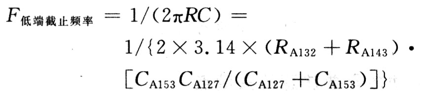 TFA9810T輸入端采用可抑制共模干擾的全差分輸入電路。以圖8 AMP-Rin輸入端為例,RA128/RA133/CA139構(gòu)成負(fù)反饋低通濾波器,用于衰減反饋信號(hào)中高頻載波成分。增加低頻成分反饋量,特別是直流成分。有效改善了零輸入時(shí)因輸入信號(hào)直流電平與比較器門限電壓差異形成的占空比誤差,調(diào)整RA128也可實(shí)現(xiàn)TFA9810T增益控制,使Au(dB)=20log(VOUT/VIN)≌20log(RA128/RA132)。器件CA153/RA132/RA133及TFA9810T內(nèi)阻構(gòu)成高通濾波器,用于對(duì)輸入信號(hào)的緩沖。若CA153容值過(guò)小,會(huì)影響低頻響應(yīng),理論確定公式為: