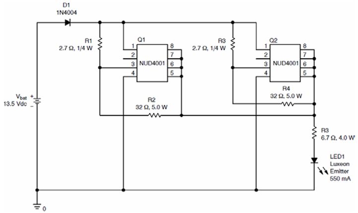 圖4:NUD4001在汽車停車燈中的應用示例[page]