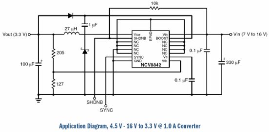 圖6: 基于NCV8842轉(zhuǎn)換器的應用電路[page]