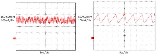減少電容器和電感值,或不使用CTRL電阻有可能進(jìn)一步降低成本和縮小PCB尺寸。使用小容量電容器會導(dǎo)致平均輸出電流的大幅下降,因此不推薦這樣做,但適用于亮度較低的(200至250 mA)的應(yīng)用。選擇較小正向電壓的高品質(zhì)LED對實(shí)現(xiàn)更大輸出電流的設(shè)計(jì)非常重要。