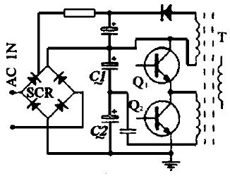 筆者在1000W半橋式開關(guān)電源的設(shè)計中, 首次用一個單向可控硅代替前端AC 輸入整流橋的一個橋臂, 其控制端由主變壓器的一個副繞組來控制(如圖9 所示) .這樣, 在電源接通的初始態(tài), 該整流橋處于半波整流態(tài)。待電源啟動后, 可控硅導(dǎo)通, 整流橋轉(zhuǎn)為全波整流。由此可達到降低啟動電壓的目的。同時, 還可有效地抑止浪涌電流。實踐證明, 該電路簡單可靠很值得大家借鑒。