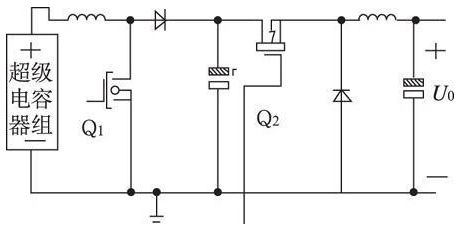 由于光伏陣列受外界環(huán)境影響較大, 本系統(tǒng)中12 V的太陽能板輸出電壓的變化范圍約為0~ 20 V,如果直接為鉛酸蓄電池充電, 由于鉛酸蓄電池的正常工作電壓要高于10. 8 V, 因此當弱光條件下, 太陽能板的輸出電壓低于鉛酸蓄電池的端電壓時, 其產(chǎn)生的電能不能被鉛酸蓄電池吸收。因此本系統(tǒng)采用把太陽能板輸出經(jīng)過超級電容器組, 再由超級電容器組先經(jīng)升降壓后為鉛酸蓄電池充電, 有效增強系統(tǒng)弱光充電能力, 提高利用效率。