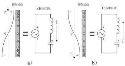 天線來回極化的工作原理可以等效成一個串聯(lián)諧振電路,當天線在電場力的作用下被極化帶電時,它又相當于一個電容在充電;當天線中的載流子在電場力的作用下來回移動時,它又相當于一個電感,并且在天線的周圍會產(chǎn)生磁場。