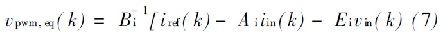式中, 輸入電流i in ; 整流控制電壓v pw m; 輸入電源電壓vin 都代表參加同步dq 參照系數(shù), A i, Bi 和Ei, 為系統(tǒng)確定的電路參數(shù)。鑒于當(dāng)前的逆變命令i ref ( k) ,DSMC 仿真相當(dāng)于控制式如下: