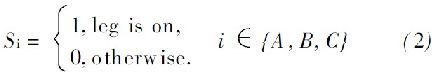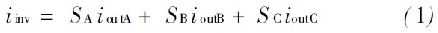 式中, SA , S B 和SC 是交換功能的交換機(jī)頂端的三個(gè)逆變器的開關(guān), 如下: