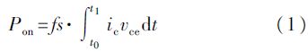 在晶體管導(dǎo)通后, 集電極電流從0逐漸變大, 而Vcesat不為0, 因此產(chǎn)生通態(tài)損耗。通態(tài)損耗可以表示為:
