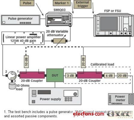 RF晶體管和RF集成電路上的功率測量的復雜性日益增大。在高功率設備性能測量中,最重要的是測量飽和功率,由于很難用CW技術來評估參數,它通常在脈沖狀態(tài)下測試。本文介紹的方法消除了用于測量的經典方法中的某些重大缺點。該方法無需外部個人電腦,只使用了Rohde&Schwarz公司的一些SMIQ信號發(fā)生器,并利用了如同高動態(tài)范圍峰值計量器一樣工作的FSP信號分析儀的一些鮮為人知的性能。