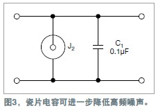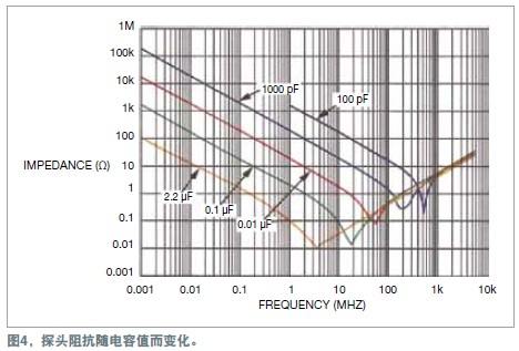 電容應(yīng)采用多層堆疊式的瓷片電容,因?yàn)樗芨玫厝ヱ罡哳l噪聲。電解電容、紙電容以及塑料薄膜電容都有兩片金屬箔。金屬箔由一片電介質(zhì)分隔開,這三部分構(gòu)成一個(gè)卷狀物。這種結(jié)構(gòu)有自身的電感;因此,當(dāng)頻率高于數(shù)兆赫茲時(shí),它更類似于一只電感,而不是電容。圖4顯示了各種堆疊式瓷片電容值對(duì)電源的阻抗。
