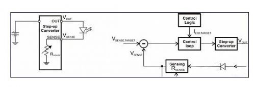 將閃光燈 LED 與一個(gè)電流檢測(cè)電阻串聯(lián),然后通過(guò)一個(gè)升壓轉(zhuǎn)換器來(lái)驅(qū)動(dòng),這是一種簡(jiǎn)單的方法。圖 1 描述了這種方法。