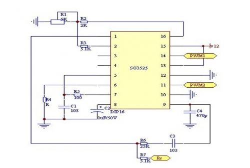 本設(shè)計(jì)采用的電源核心控制部分的芯片為美國(guó)通用公司芯片SG3525.控制電路如圖:
