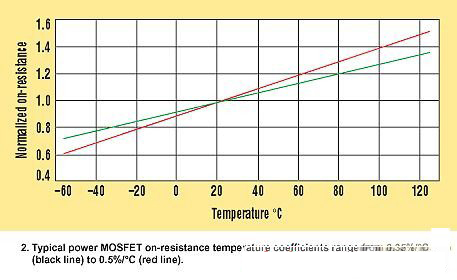 對(duì)于開關(guān)MOSFET和同步整流器兩者,都是選擇作為此迭代過(guò)程開始點(diǎn)的最大允許裸片結(jié)溫(TJ(HOT))。大多數(shù)MOSFET數(shù)據(jù)參數(shù)頁(yè)只給出25°C的最大RDS(ON),,但近來(lái)有一些也提供了125°C的最大值。MOSFETRDS(ON)隨著溫度而提高,通常溫度系數(shù)在0.35%/°C至0.5%/°C的范圍內(nèi)(圖2)。如果對(duì)此有所懷疑,可以采用更悲觀的溫度系數(shù)和MOSFET在25°C規(guī)格參數(shù)(或125°C的規(guī)格參數(shù),如果有提供的話)計(jì)算所選擇的TJ(HOT)處的最大RDS(ON):RDS(ON)HOT=RDS(ON)SPEC×[1+0.005×(TJ(HOT)?TSPEC)]