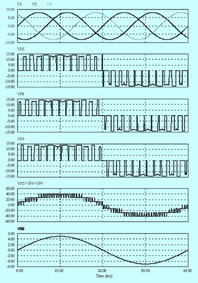 4 矩陣級(jí)聯(lián)型變頻器的系統(tǒng)仿真