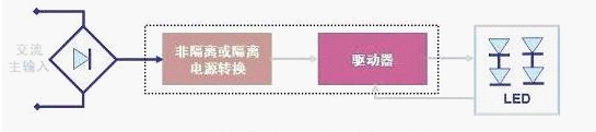 led 的排列方式及LED光源的規(guī)范決定著基本的驅(qū)動器 要求。LED 驅(qū)動器的主要功能就是在一定的工作條件范圍下限制流過LED 的電流, 而無論輸入及輸出電壓如何變化。LED驅(qū)動器基本的工作電路示意圖如圖4所示,其中所謂的“隔離”表示交流線路電壓與LED(即輸入與輸出)之間沒有物理 上的電氣連接,最常用的是采用變壓器來電氣隔離,而“非隔離”則沒有采用高頻變壓器來電氣隔離。