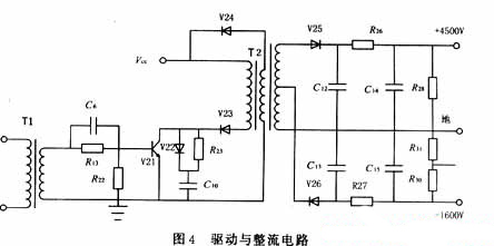 經(jīng)過T1的隔離,通過調(diào)整電阻R13使輸入V21的脈沖寬度變化從而達到調(diào)壓的目的。其中加速電容C5、電阻R13按V21的穩(wěn)態(tài)驅動電流確定。