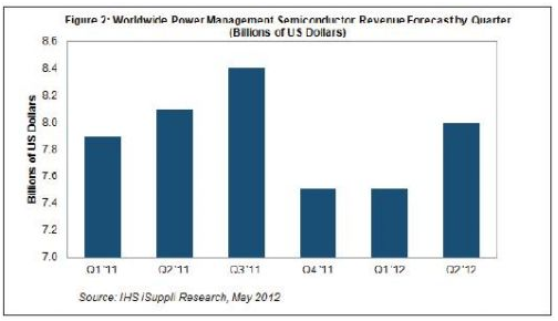 據(jù)IHS iSuppli公司的電源管理市場追蹤報告,繼2011年第四季度慘跌之后,電源管理半導(dǎo)體在2012年初有所回升,并在第二季度終于走上明顯增長之路,主要是受消費與工業(yè)領(lǐng)域的擴張推動。