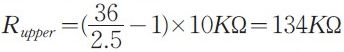 假設(shè)流經(jīng)橋分壓器的電流為250uA,由于TL431 的參考電壓為2.5V,則: