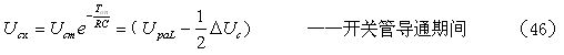 如果考慮電阻R對(duì)電容器C充電時(shí)的分流作用,以及開(kāi)關(guān)管由導(dǎo)通到完全關(guān)斷期間漏極電流(逐步減小)對(duì)電容器C充電時(shí)的分流作用,則(33)和(34)式可以改寫(xiě)為: