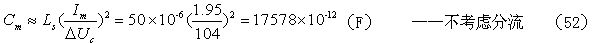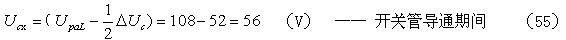 當考慮電阻R對電容器C充電的分流作用,以及開關(guān)管由導(dǎo)通到完全關(guān)斷期間,漏極電流對電容器C充電的分流作用時,根據(jù)(36)式,假設(shè)分流系數(shù)r = 0.5 ,則(52)式還可改寫為: