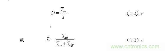 式中Ton為控制開(kāi)關(guān)K接通的時(shí)間,T為控制開(kāi)關(guān)K的工作周期。改變控制開(kāi)關(guān)K接通時(shí)間Ton與關(guān)斷時(shí)間Toff的比例,就可以改變輸出電壓uo的平均值Ua 。一般人們都把 稱(chēng)為占空比(Duty),用D來(lái)表示,即: