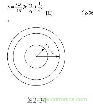 同軸電纜線如圖2-34所示,其電感為: