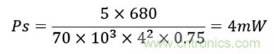 本次設(shè)計中,輸出功率為 5W,最大開關(guān)頻率設(shè)計為 70KHz。所以,可以計算得,理論待機功耗為: