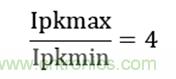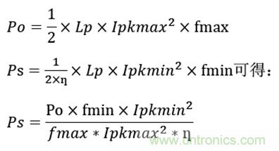 由上式可得,待機功耗的大小跟變壓器電感量大小,變換器具體的峰值電流無關(guān),只與設(shè)計的最高工作頻率與芯片最低工作頻率比以及最大設(shè)計峰值電流和最小峰值電流比有關(guān)。根據(jù)芯片規(guī)格書得: