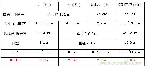 作為安規(guī)元件的保險(xiǎn)絲,MF2410通用模塊保險(xiǎn)絲滿足了上面的小體積和SMD工藝的需求。相對于傳統(tǒng)保險(xiǎn)絲的尺寸,MF的體積小優(yōu)勢十分明顯。