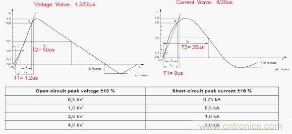 >>電路若有阻抗(如MLV),Peak值估計(jì)大約為理論值的60~70%;例如,典型的雷擊電流波形和參數(shù)如下: