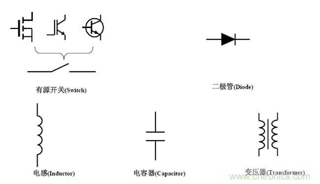 開關(guān)電源功率電路的五個(gè)基本元件:開關(guān),二極管,電容,電感,變壓器