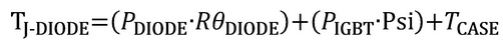 下文將闡釋怎樣量測(cè)兩個(gè)組件的功率耗散,使用IGBT及二極管的θ值計(jì)算平均結(jié)溫及峰值結(jié)溫。