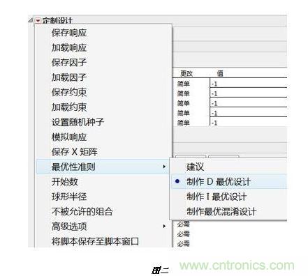 篩選設(shè)計(jì)是指在問題研究的早期,潛在的候選因素很多,如何有效地大規(guī)模降低實(shí)驗(yàn)次數(shù)而又準(zhǔn)確地找到少數(shù)幾個(gè)影響發(fā)動(dòng)機(jī)性能的關(guān)鍵因素。具體的實(shí)現(xiàn)手段有兩種:一種是經(jīng)典的實(shí)驗(yàn)設(shè)計(jì)方法,如部分析因設(shè)計(jì)、Plackett-Burman設(shè)計(jì)等(如圖一所示);另一種是高級(jí)的實(shí)驗(yàn)設(shè)計(jì)方法,如D最優(yōu)設(shè)計(jì)等(如圖二所示)。