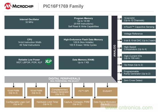 Microchip MCU8部門副總裁Steve Drehobl表示:“PIC16F1769系列真正強大的功能在于能夠實現(xiàn)片上外設的互連,從而根據(jù)特定的應用來創(chuàng)建定制化功能。再加上能夠同時控制獨立閉環(huán)通道,新產(chǎn)品的功能遠遠超出了傳統(tǒng)低成本8位 PIC MCU。”