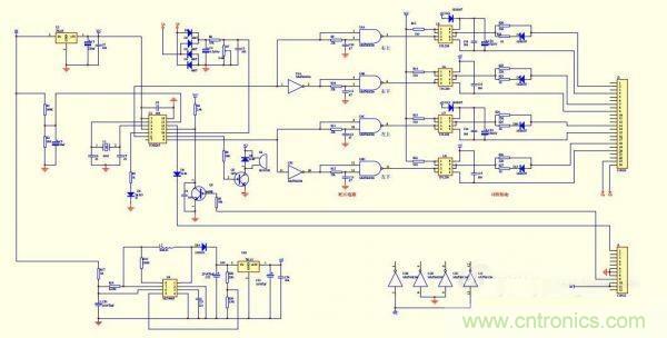 SPWM的核心部分采用了TDS2285單片機(jī)芯片。U3、U4組成時(shí)序和死區(qū)電路,末級(jí)輸出用了4個(gè)250光藕,H橋的二個(gè)上管用了自舉式供電方式,這樣做的目的是簡化電路,可以不用隔離電源。