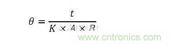 變量l是通孔的長度(從頂面銅層到底面銅層)。電路板上焊接電源模塊的地方?jīng)]有阻焊層,但對其他區(qū)域,PCB設(shè)計工程師可能要求在每個通孔的頂部放置阻焊層,否則通孔上面的區(qū)域會空缺。由于通孔只連接外銅層,所以其長度為63.4密耳(0.0634英寸)??偼组L度本身的熱阻是167°C/W,如式3所示。