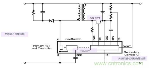 PI的FluxLink技術,就是為了解決這個困擾而開發(fā)的。FluxLink技術不僅能實現(xiàn)高性能次級反饋控制,而且還能實現(xiàn)初級反饋控制通常所提供的線路簡單以及元器件數(shù)目少的優(yōu)勢,而高效的同步整流技術的采用,可以保證在包括重載在內的整個負載范圍內均提供極高的效率,讓電源的設計“魚和熊掌兼得”。