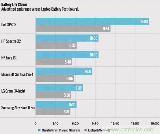 外媒Laptop Mag近日針對(duì)市場(chǎng)中主流筆記本進(jìn)行了一項(xiàng)電池壽命比對(duì)測(cè)試,通過筆記本電池測(cè)試得出接近于現(xiàn)實(shí)使用環(huán)境下的電池壽命,再與官方宣稱的電池壽命相比對(duì)。