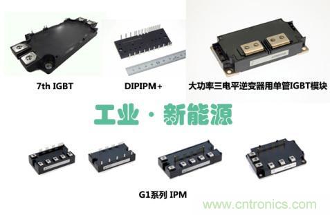 針對(duì)伺服驅(qū)動(dòng)器、光伏逆變器等工業(yè)市場(chǎng)需求,三菱電機(jī)此次重點(diǎn)推介整流逆變制動(dòng)一體化模塊DIPIPM+,G1系列IPM,第7代IGBT以及大功率三電平逆變器用單管IGBT模塊四種產(chǎn)品。憑借良好性能獲得市場(chǎng)青睞的第7代IGBT,兩種封裝方式兼容了現(xiàn)有市場(chǎng)主流產(chǎn)品封裝,并采用預(yù)涂熱界面材料(PC-TIM)有效降低了50%接觸熱阻。同樣備受期待的產(chǎn)品,還有今年全新開發(fā)的“G1系列IPM”。它采用第7代 IGBT和FWDi芯片,配備多種額定電流對(duì)應(yīng)廣泛用途的